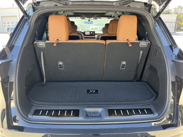 INFINITI CERTIFIED, 3rd row seats: bench, Alloy wheels, Apple CarPlay/Android Auto, Auto-dimming door mirrors, Brake assist, Front dual zone A/C, Fully automatic headlights, Heads-Up Display, Heated front seats, Heated rear seats, Memory seat, Navigation system: Google Built-in, Power Liftgate, Power moonroof: Panoramic, Radio: Klipsch Premiere Audio System, Rain sensing wipers, Remote keyless entry, Steering wheel mounted audio controls, Turn signal indicator mirrors, Ventilated front seats.